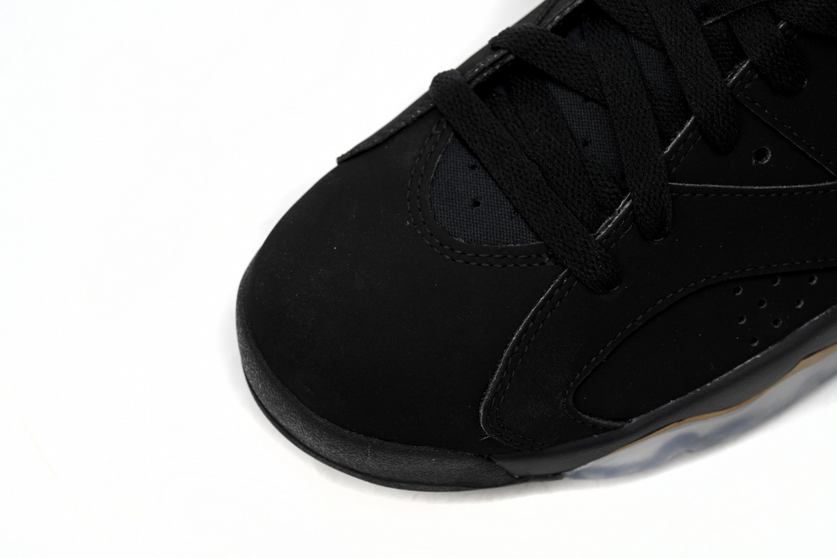 This Jordan 6 DMP is composed of a black nubuck suede upper with gold detailing. A gold dog tag styled hang tag, translucent outsole, and Jumpman heel embroidery completes the design.