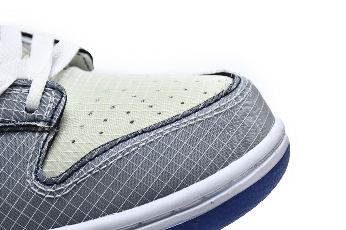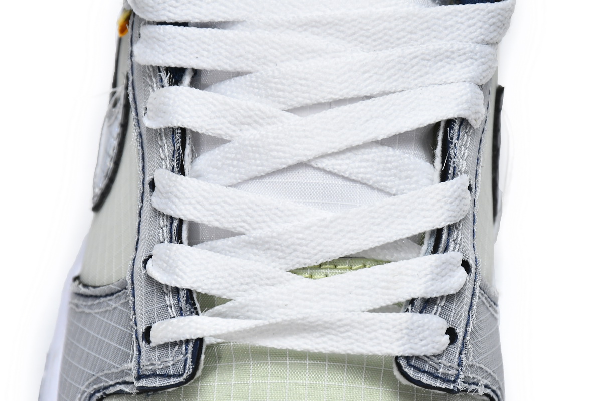Drawing inspiration from passports and government documentation, the Nike Dunk Low Union Passport Pack Pistachio features a light green and navy leather upper that is shrouded in a semi-translucent ripstop nylon. A Walter Lee Young-inspired emblem at the heel and a yellow Union LA tab on the quarter panel adds a touch of customization. At the base, a semi-translucent sole completes the design.