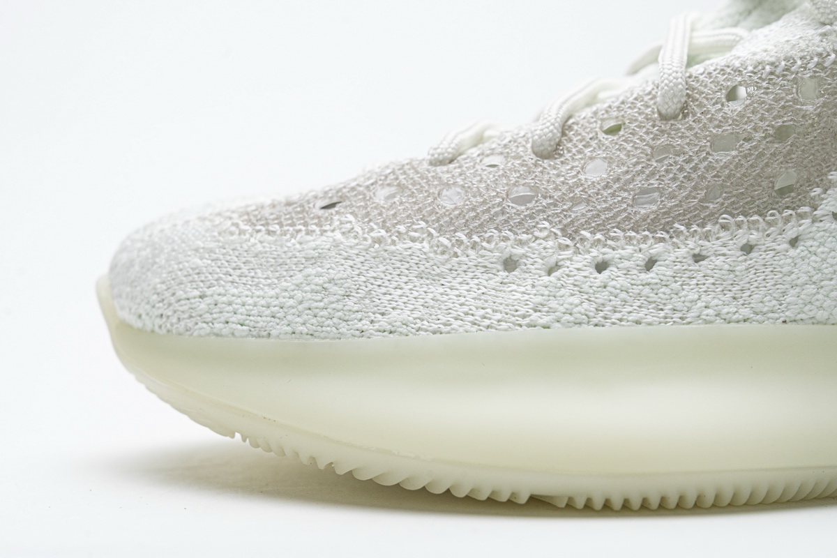 The Yeezy 380 Calcite Glow is reminiscent of the very first Yeezy 380 release, the Yeezy 380 Alien. Similar to the Alien, the Calcite Glow features a white and grey perforated Primeknit upper. The main difference between the two colorways is that the Calcite Glow primarily features white throughout, with grey detailing. Also, the Calcite comes with a translucent, glow-in-the-dark sole that is guaranteed to add some extra glow to your feet.